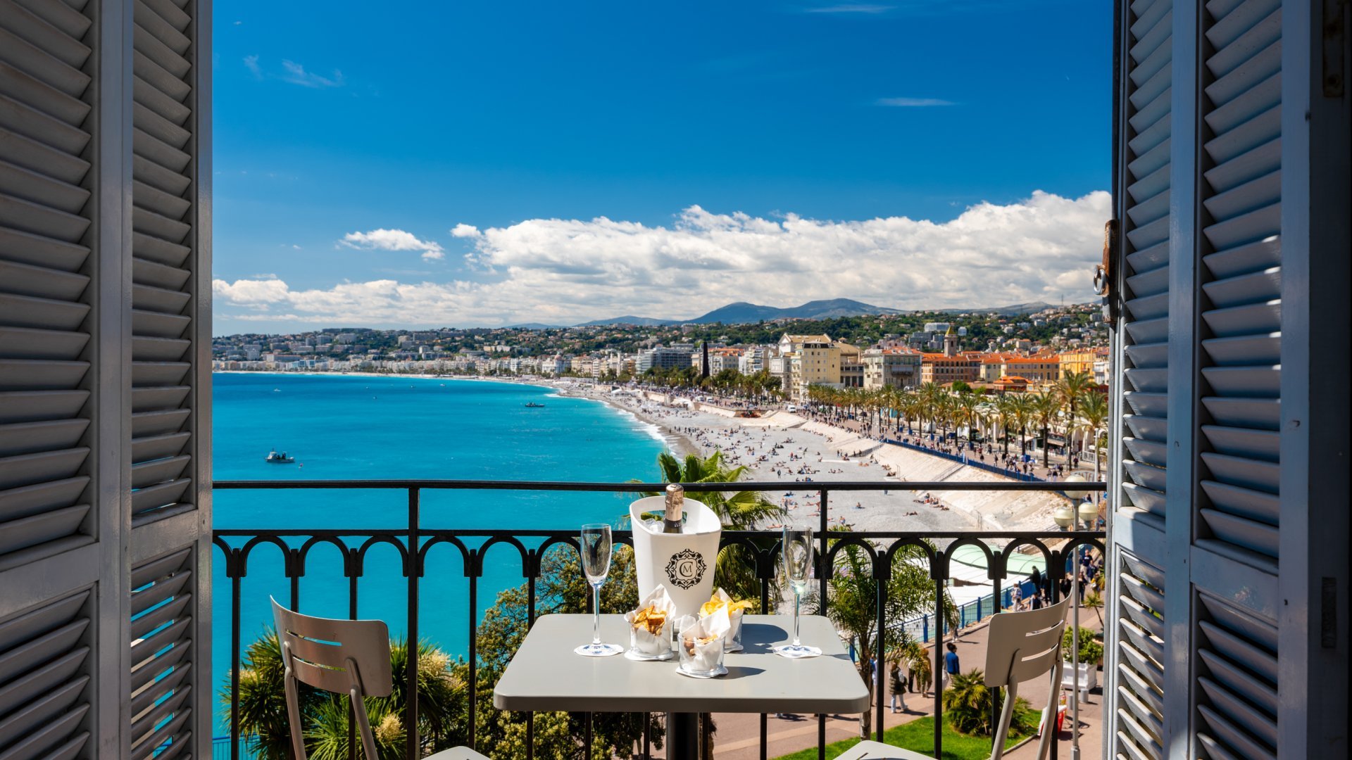 Petit déjeuner au Champagne avec une vue imprenable sur la Méditerranée.